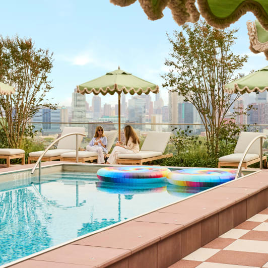With BBQs and and a pristine heated pool with unobstructed NYC views, the roof deck is the place to be.